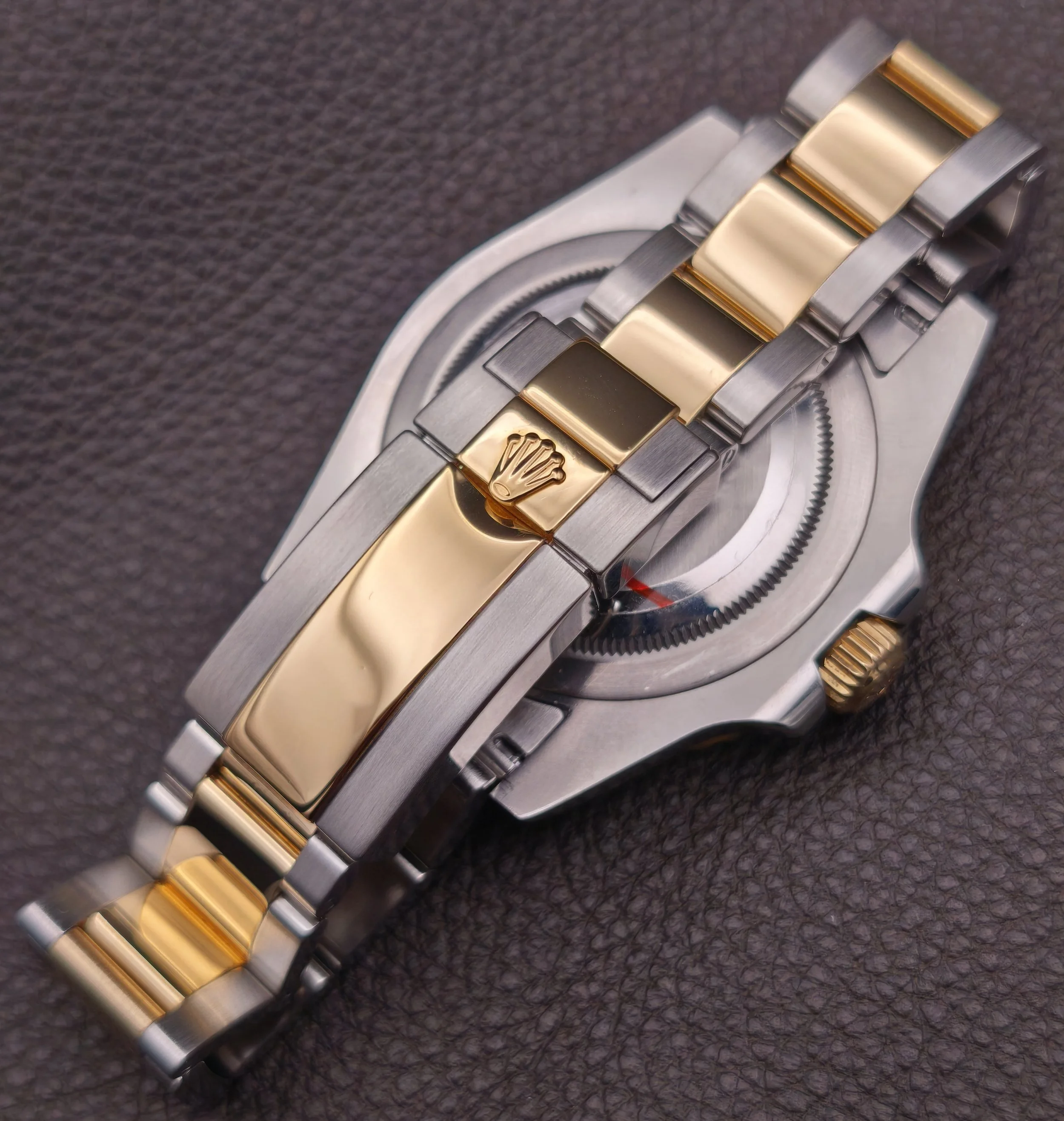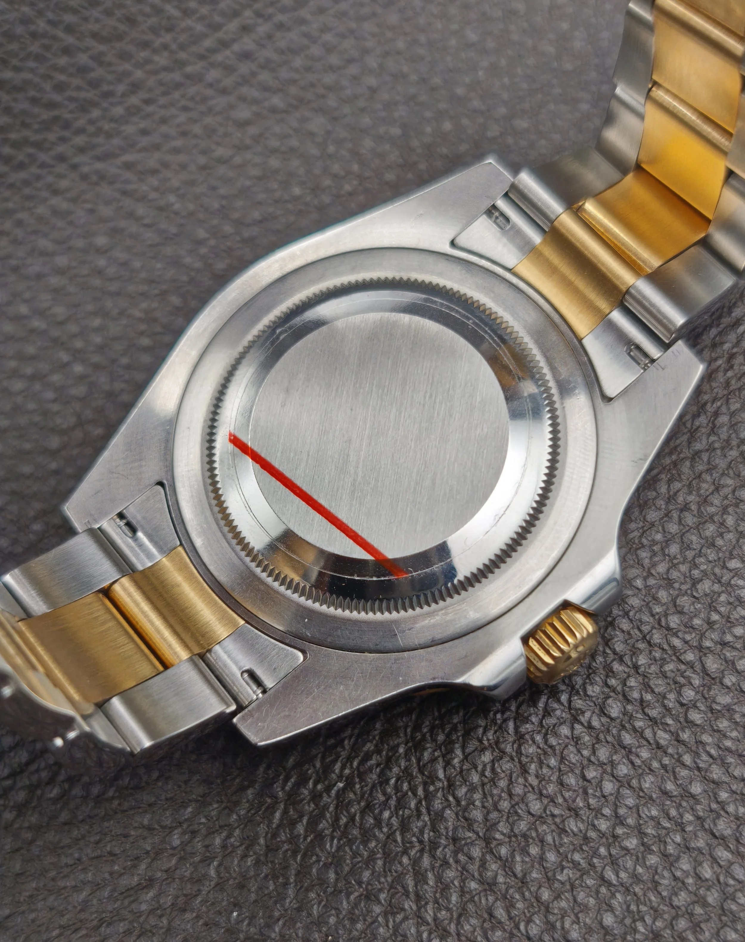 The crown and rotating bezel work perfectly, and the screw-in caseback is unmarked.